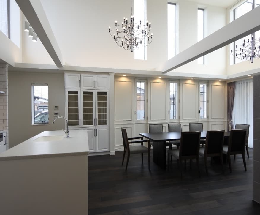 窓廻りの面材を弊社で提供し空間デコレーションを行いエレガンス名空間を演出しました。